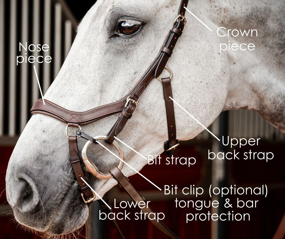 Fitting the Tongue & Bar Protector (optional) The bit clips can be used in conjunction with a fitted bit. This provides you with a unique tongue and bar protection system. If a rider gets left behind, or a horse and rider pull against each other, the clips will shift the extra pressure to the nose rather than on to the tongue or the very narrow bars of the mouth.